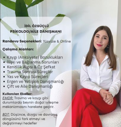 Kızım depremden çok korkuyordu İzmir depreminde en yakın arkadaşlarını kaybetmişti. İdil Hanım'la görüşmelere yeni başladık ama 2. seanstan itibaren kızımda depremle ilgili birçok yolu kat etmiş olduk. Kendisine arkadaşımın tavsiyesi üzerine görüşme sağlamıştık ve sürecimiz devam ediyor. Aynı kuşaktan ve aynı dilden olması kızım için genç bir psikolog arayışı içerisindeydim kendisi genç, güler yüzlü, sempatik bir kadın. İdil Hanım'dan aldığımız danışmanlık hizmetinden memnunuz ve memnuniyet kaynaklı devam ediyoruz. Kendisinin kızımla arasında iletişimi çok güzel benim içinde en önemli şey buydu.